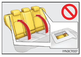 ■ Al plegar los respaldos traseros Tenga en cuenta las siguientes medidas de precaución. De lo contrario, pueden producirse lesiones graves o incluso mortales.