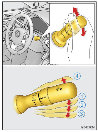 El funcionamiento del limpiaparabrisas se selecciona moviendo la palanca como se indica a continuación.